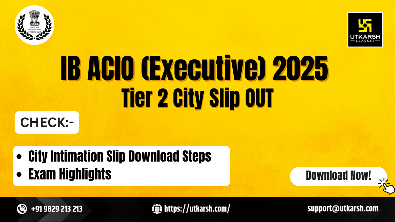 IB ACIO (Grade 2 Executive) City Intimation Slip 2025 has been released by the Ministry of Home Affairs (MHA) for the Tier II exam on 31 December 2025. The IB ACIO Grade II (Executive) Exam City Slip has been released, along with the exam's scheduled date and shift timing information, on the official website of the MHA. The same information has also been shared with candidates via their registered email ID. Ministry of Home Affairs will conduct the IB ACIO Tier 2 exam on 11 January 2026 in a single shift, for the shortlisted candidates on the basis of the IB ACIO Tier 1 Examination held from 16 to 18 September 2025.
