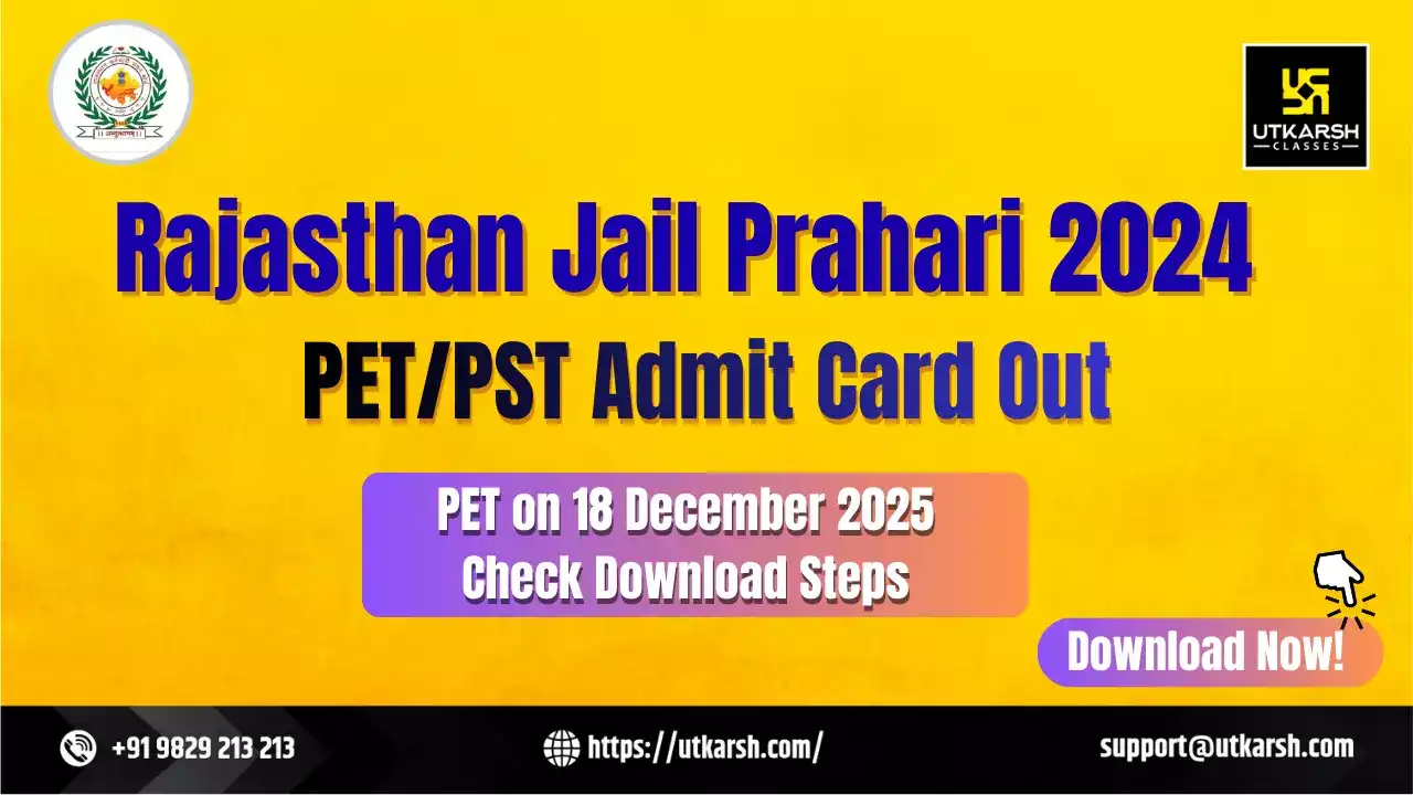 Rajasthan Jail Prahari PET/PST Admit Card 2024 has been released by the Rajasthan Staff Selection Board (RSSB) for candidates shortlisted for the Physical Efficiency Test and Physical Standard Test. The Rajasthan Jail Prahari PET/PST is scheduled to be conducted on 18 December 2025 at the Jail Training Centre, Ajmer. Candidates can download their admit card by visiting the official RSSB website or using the direct PET/PST admit card link provided below in this article.