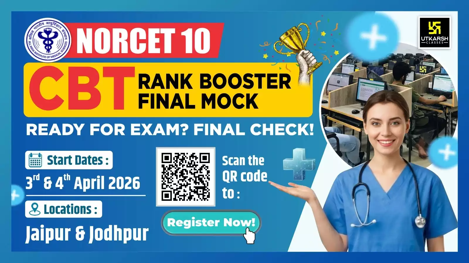 Candidates can now attempt a real exam-based mock for AIIMS NORCET 10 and evaluate their performance in a CBT-like environment. Candidates can attempt this real exam-based mock in a CBT setup at Utkarsh Classes’ offline centres in Jaipur and Jodhpur. Scheduled just 7 days before the exam, it gives nursing aspirants a chance to experience actual exam pressure and improve their performance. Candidates are advised to register before the last date, as registration is mandatory and no entry will be allowed after the last date.