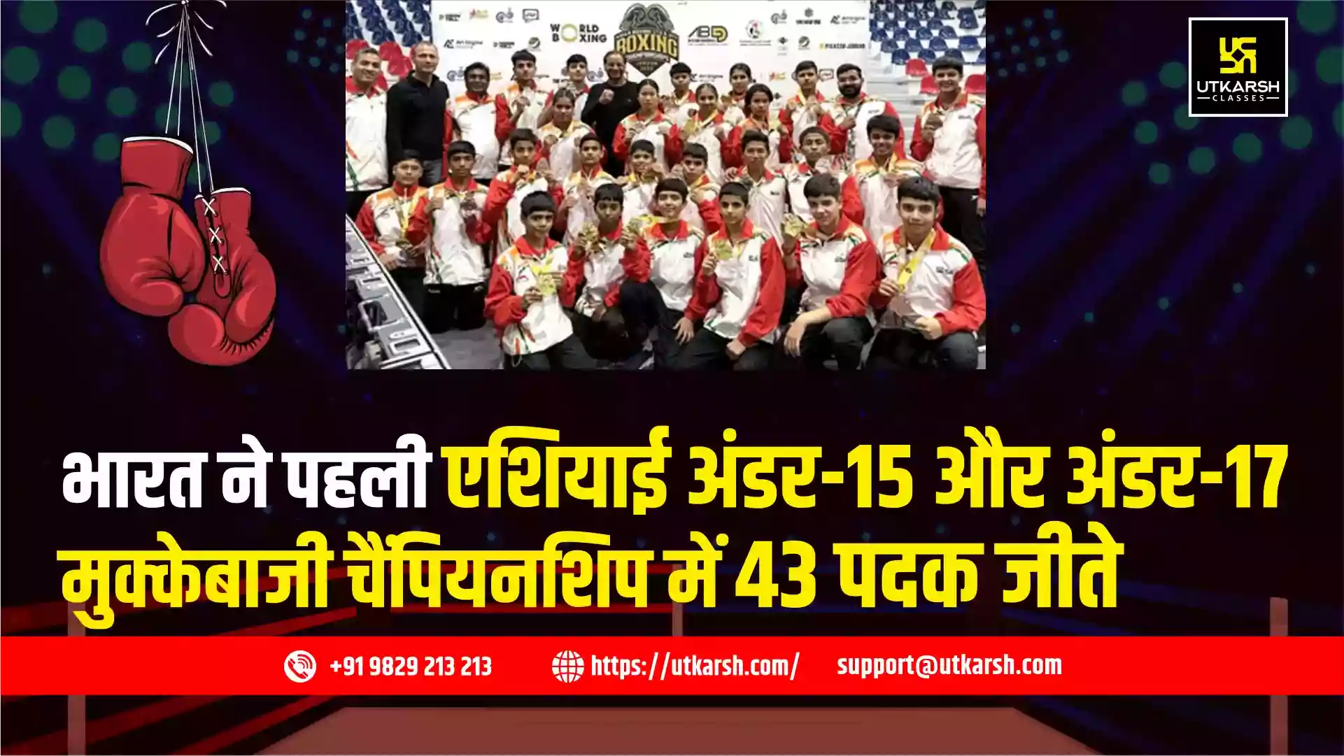 युवा भारतीय मुक्केबाजी दल ने पहली एशियाई अंडर-15 और अंडर-17 मुक्केबाजी चैंपियनशिप 2025 में 43 पदक -15 स्वर्ण, 6 रजत और 22 कांस्य - जीतकर कुल पदक तालिका में तीसरा स्थान हासिल किया।