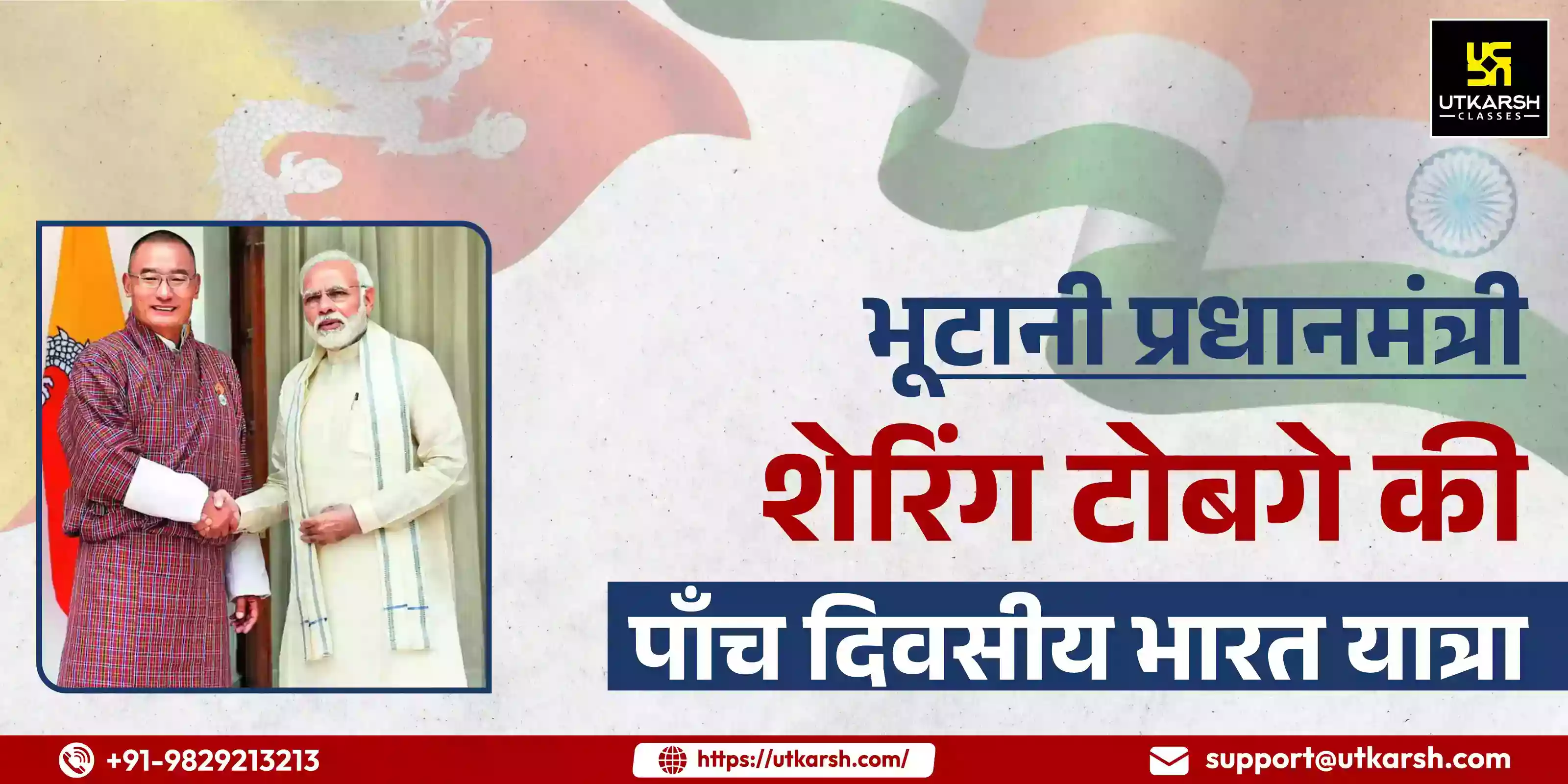 भूटान के प्रधानमंत्री शेरिंग तोगबे 14 से 18 मार्च, 2024 के बीच भारत के पांच दिवसीय दौरे पर आये। पूर्व में भारत के विदेश सचिव विनय मोहन क्वात्रा 29 से 31 जनवरी 2024 तक थिम्पू, भूटान की आधिकारिक यात्रा की थी।