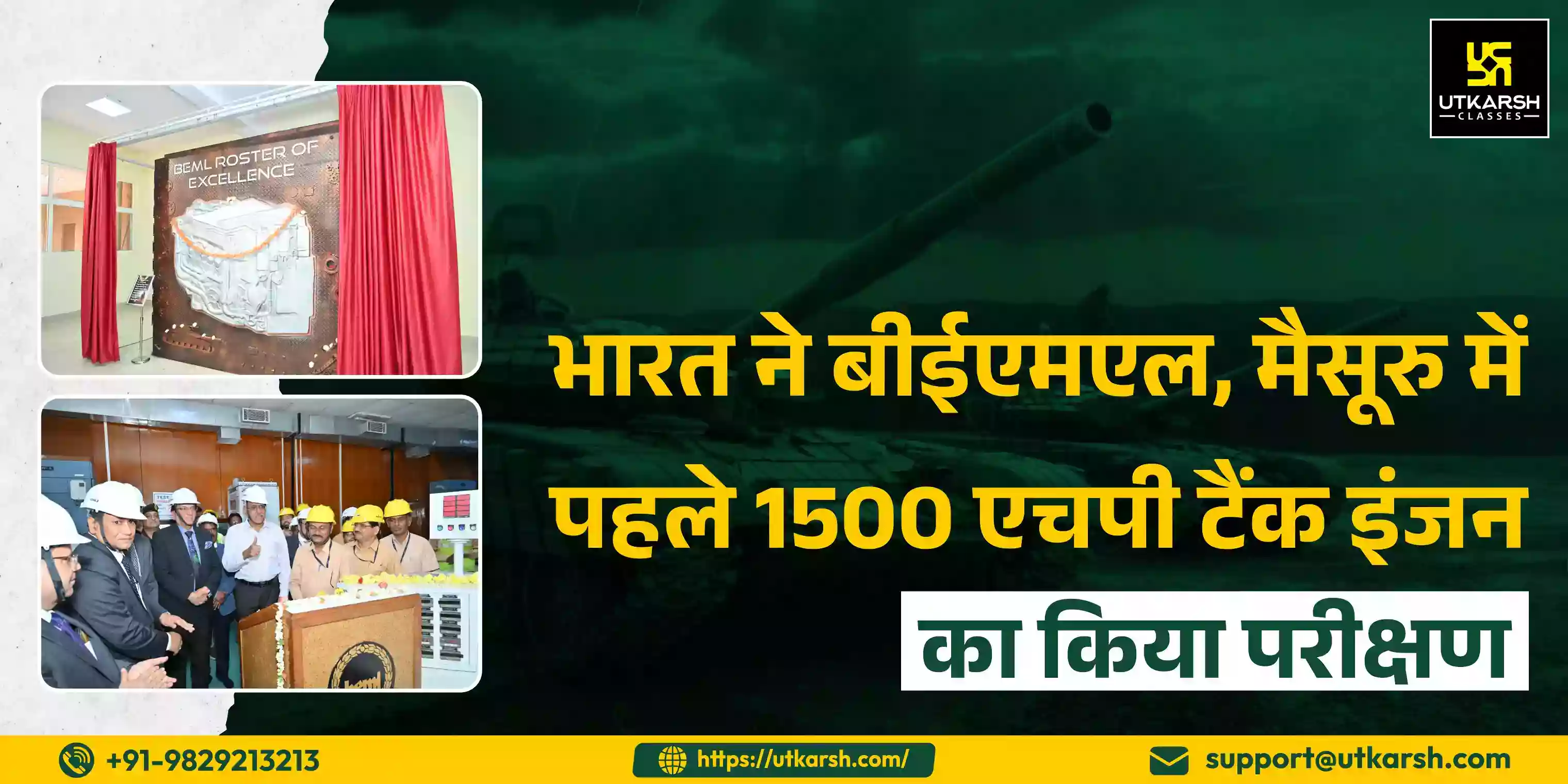 20 मार्च 2024 को बीईएमएल मैसूरू में सेना के मुख्य युद्धक टैंकों के लिए पहले स्वदेश निर्मित इंजन का सफलतापूर्वक परीक्षण किया गया। इस इंजन की क्षमता 1500 हॉर्सपावर की है। रक्षा मंत्रालय ने इसे एक नए युग की शुरुआत करार दिया है। यह परिक्षण रक्षा सचिव गिरिधर अरमाने की अध्यक्षता में किया गया।