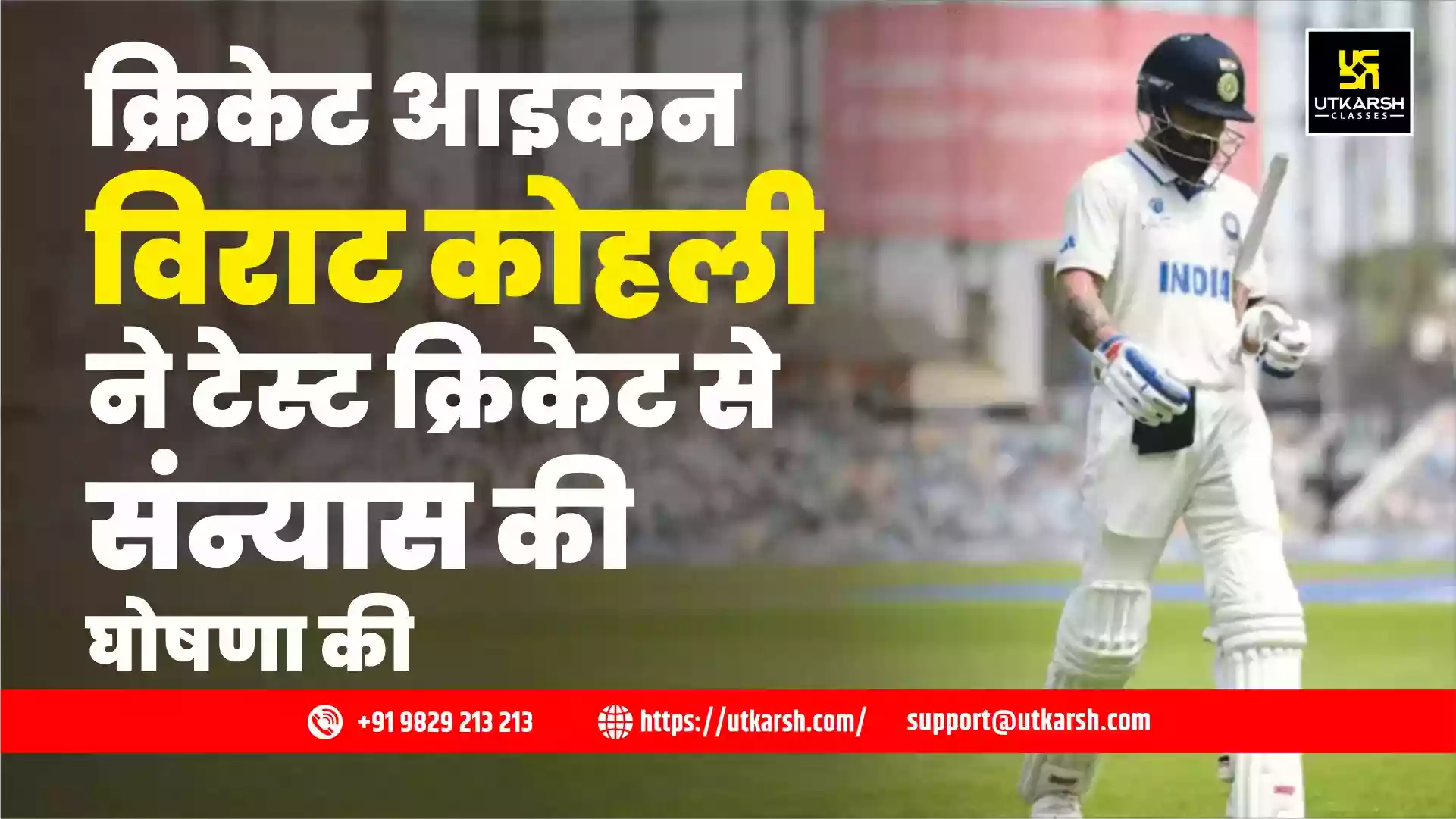 क्रिकेट आइकन और दुनिया में टेस्ट क्रिकेट के सबसे उत्साही समर्थकों में से एक, विराट कोहली ने टेस्ट क्रिकेट से संन्यास की घोषणा की है। भूतपूर्व भारतीय टीम के कप्तान ,विराट कोहली ने 12 मई 2025 को अपने सोशल मीडिया पोस्ट में क्रिकेट के सबसे लंबे प्रारूप-टेस्ट क्रिकेट से संन्यास लेने की घोषणा की।