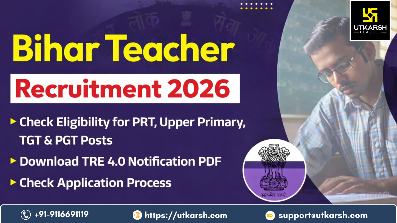 बिहार लोक सेवा आयोग (बीपीएससी) ने बीपीएससी टीआरई 4.0 के तहत बिहार शिक्षक भर्ती 2026 के लिए एक संक्षिप्त अधिसूचना जारी की है। बीपीएससी राज्य भर के सरकारी स्कूलों में बिहार शिक्षा विभाग के अंतर्गत प्राथमिक शिक्षक (कक्षा 1-5), उच्च प्राथमिक शिक्षक (कक्षा 6-8), माध्यमिक शिक्षक (कक्षा 9-10) और वरिष्ठ माध्यमिक शिक्षक (कक्षा 11-12) के पदों पर योग्य उम्मीदवारों के चयन के लिए शिक्षक भर्ती परीक्षा (टीआरई) आयोजित करता है।