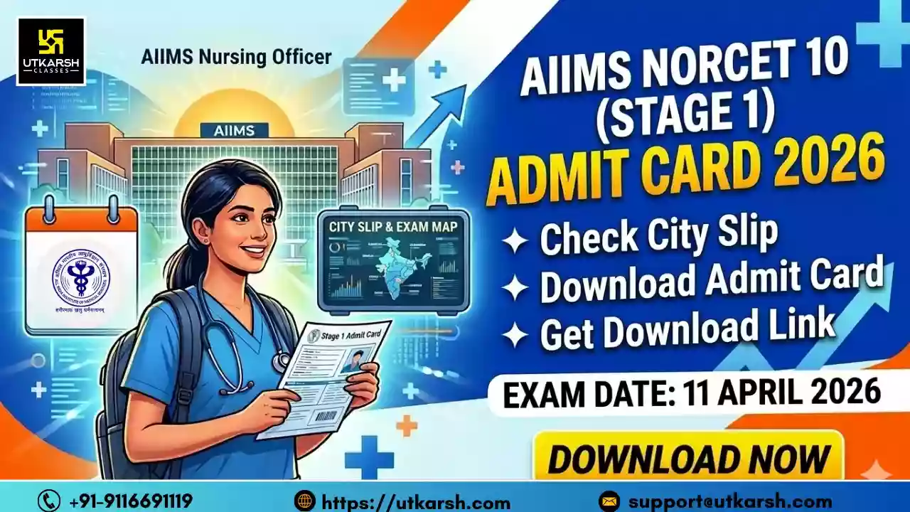 एम्स नोर्सेट 10 2026 का प्रवेश पत्र 8 अप्रैल 2026 को सक्रिय हो गया है। उम्मीदवारों को अपना नोर्सेट 10 हॉल टिकट प्राप्त करने के लिए अपने लॉगिन विवरण, जैसे कि उम्मीदवार आईडी या मोबाइल नंबर, और पासवर्ड प्रदान करना होगा। यह सलाह दी जाती है कि उम्मीदवार अंतिम समय में किसी भी तकनीकी समस्या से बचने के लिए समय सीमा से पहले अपना प्रवेश पत्र डाउनलोड कर लें। यदि आपको एम्स नोर्सेट 10 चरण 1 प्रवेश पत्र 2026 डाउनलोड करने में कोई परेशानी आ रही है, तो आप यहाँ दिए गए लिंक पर क्लिक कर सकते हैं: