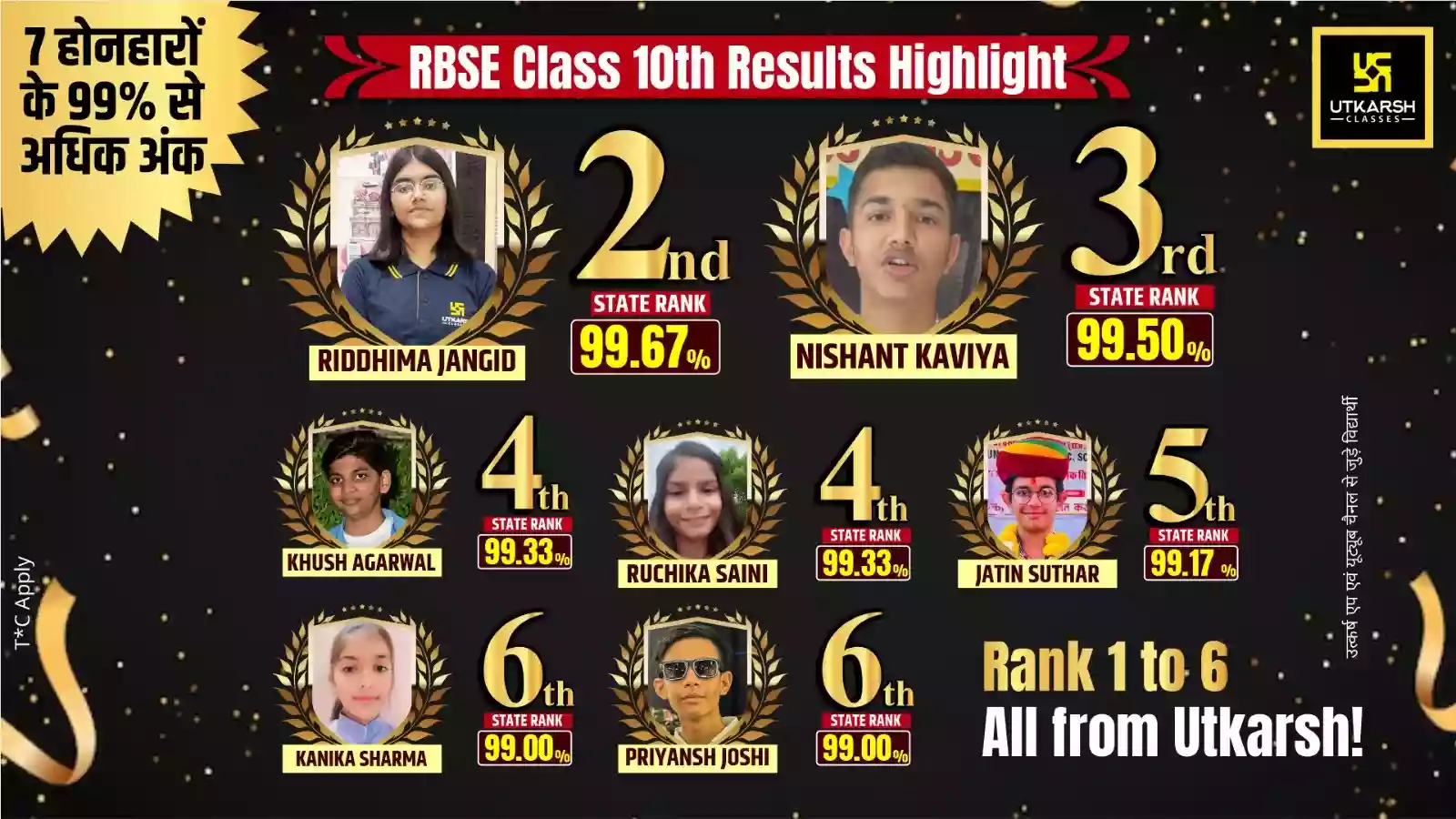 उत्कर्ष क्लासेज के छात्रों ने आरबीएसई कक्षा 10 परिणाम 2026 में 99%+ अंक प्राप्त किए!