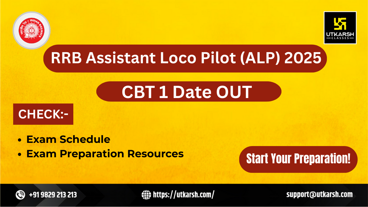 रेलवे भर्ती बोर्ड (आरआरबी) द्वारा आरआरबी एएलपी परीक्षा तिथि 2025 की घोषणा कर दी गयी है। आरआरबी द्वारा 7 जनवरी 2026 को जारी नोटिस के अनुसार, आरआरबी सहायक लोको पायलट (एएलपी) सीईएन 01/2025 की सीबीटी 1 परीक्षा 16 से 18 फरवरी 2026 तक आयोजित की जाएगी। यह भर्ती परीक्षा विभिन्न रेलवे जोन में एएलपी के 9970 रिक्त पदों को भरने के लिए आयोजित की जा रही है, जिसके कारण परीक्षा कई दिनों तक चलेगी।