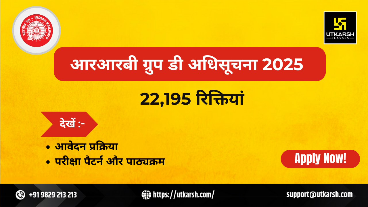 आधिकारिक अधिसूचना के अनुसार, आरआरबी ग्रुप डी पदों के लिए कुल 22,195 रिक्तियों की घोषणा की गई है। आरआरबी ग्रुप डी अधिसूचना 2025 में क्षेत्रवार रिक्तियों का वितरण, पात्रता मानदंड, महत्वपूर्ण तिथियां और चयन प्रक्रिया का विवरण शामिल है।