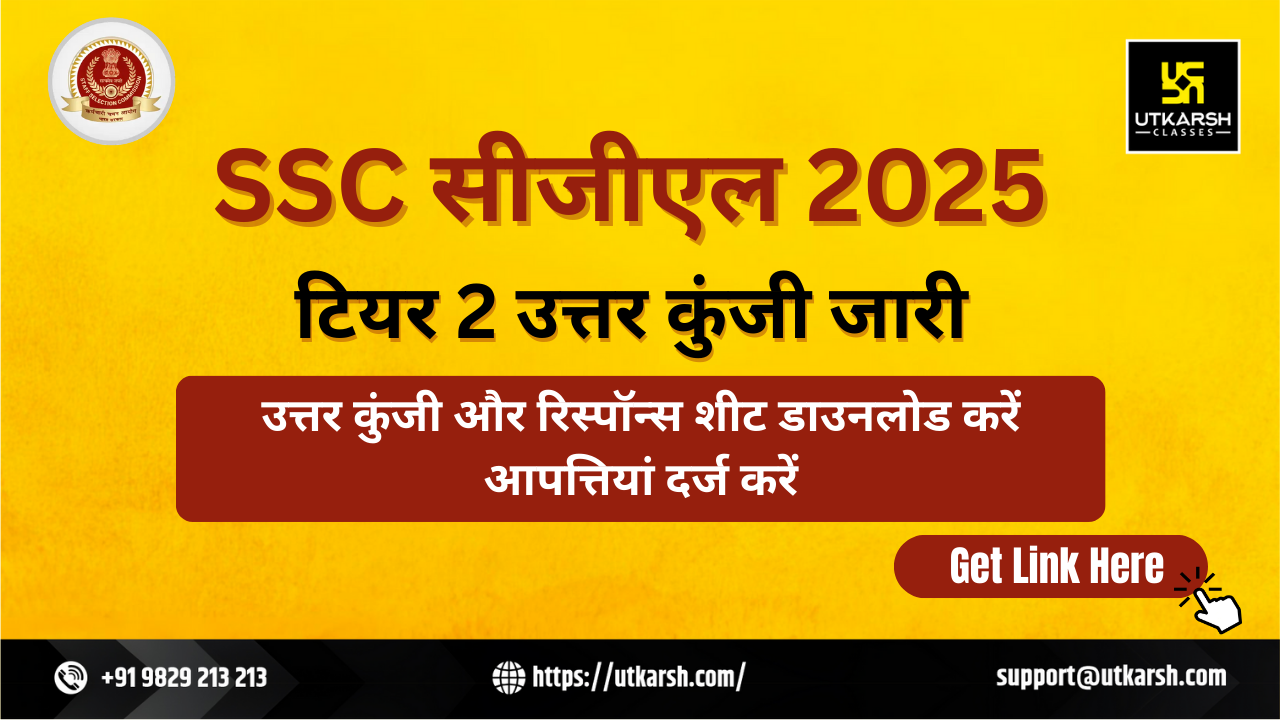 एसएससी सीजीएल टियर 2 उत्तर कुंजी 2025 कर्मचारी चयन आयोग द्वारा अपनी आधिकारिक वेबसाइट पर जारी कर दी गई है, साथ ही उम्मीदवारों को प्रश्नों या उत्तरों में किसी भी प्रकार की त्रुटि पाए जाने पर आयोग द्वारा निर्धारित समय सीमा के भीतर आपत्ति दर्ज करने का अवसर भी दिया गया है।