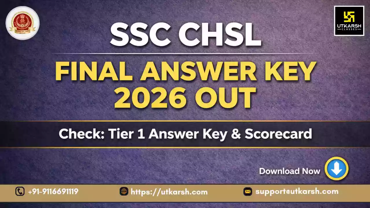 कर्मचारी चयन आयोग द्वारा एसएससी सीएचएसएल टियर 1 परीक्षा के लिए अंतिम उत्तर कुंजी 2026 को 19 मार्च 2026 को अपनी आधिकारिक वेबसाइट पर जारी कर दिया गया है। संयुक्त उच्च माध्यमिक (10+2) स्तरीय परीक्षा 2025 के टियर 1 के लिए यह अंतिम उत्तर कुंजी उम्मीदवारों की रिस्पॉन्स शीट के साथ प्रकाशित की गई है, जिसे 12 नवंबर 2025 से आयोजित टियर-I परीक्षा की अस्थायी उत्तर कुंजी पर उम्मीदवारों द्वारा उठाई गई आपत्तियों की समीक्षा के बाद जारी किया गया है।