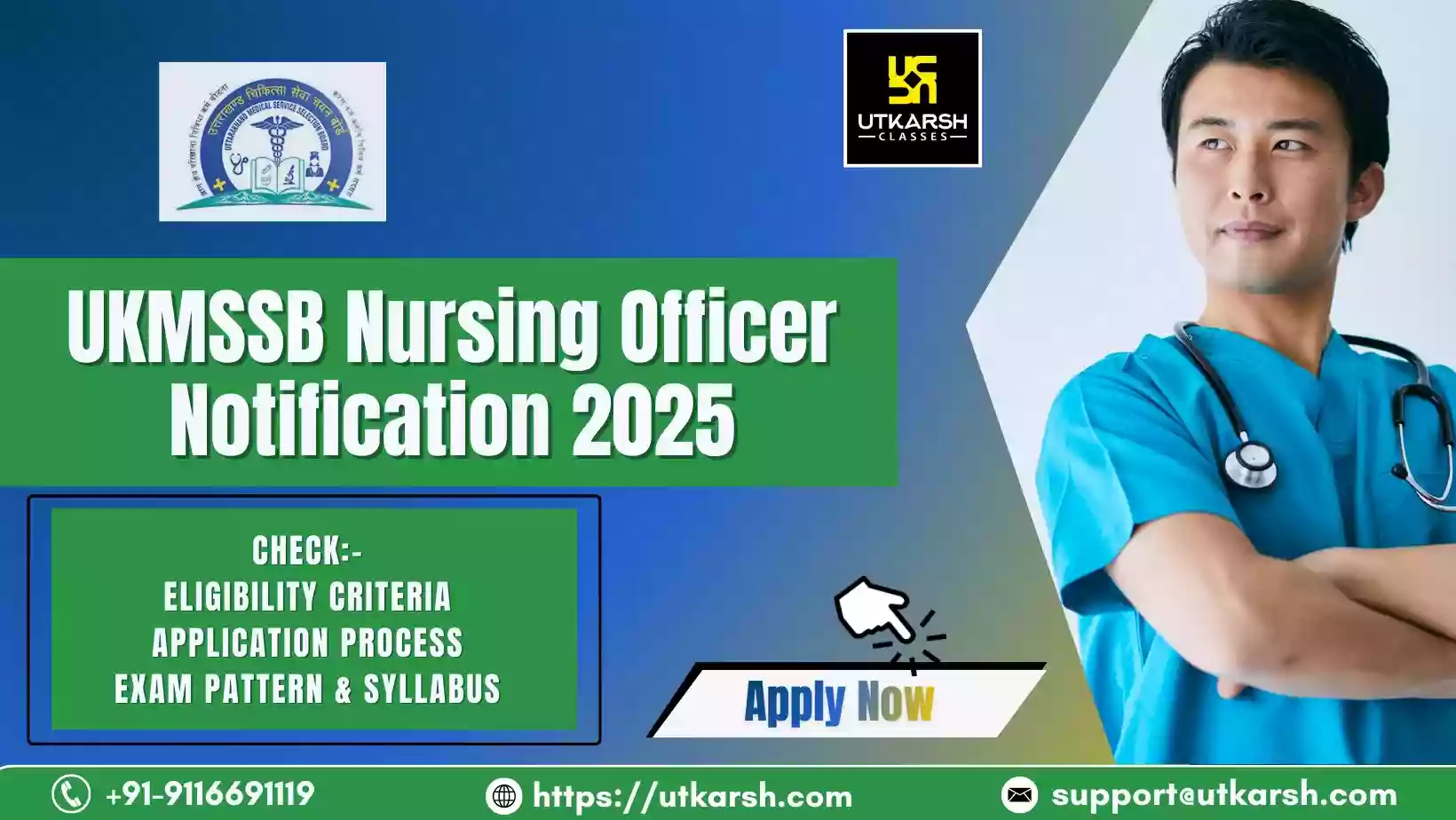 उत्तराखंड चिकित्सा सेवा चयन बोर्ड (यूकेएमएसएसबी) द्वारा 17 नवंबर 2025 को यूकेएमएसएसबी नर्सिंग अधिकारी अधिसूचना 2025 जारी की गई है। यूकेएमएसएसबी नर्सिंग अधिकारी भर्ती 2025, उत्तराखंड के चिकित्सा शिक्षा विभाग के अंतर्गत 587 नर्सिंग अधिकारी (पुरुष/महिला) पदों पर भर्ती के लिए आयोजित की जा रही है। यूकेएमएसएसबी नर्सिंग अधिकारी एक अराजपत्रित पद है जिसका वेतनमान वेतन स्तर-7 के अंतर्गत ₹44,900 से ₹1,42,400 है।